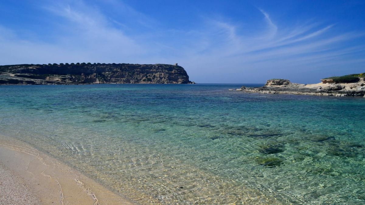 La spiaggia è racchiusa ai lati dalle scogliere di Capo Mannu e Su Pallosu.